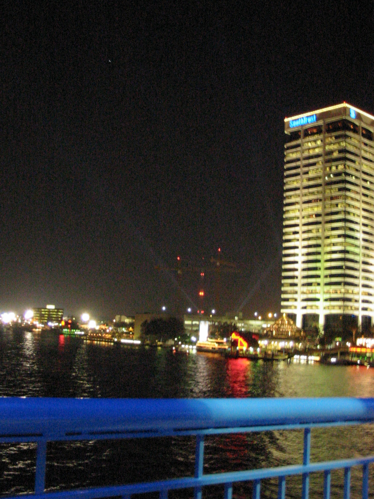 The bright lights were at the NFL Experience, on the grounds of the former JEA Southside Generating Station. Note the cranes at the (then-future) site of The Strand and The Peninsula, and the name on the Gulf Life tower.