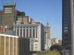 The view over Forsyth and Julia streets is amazing. If you’d like to watch the construction progress of the Unified Duval County Courthouse, it’s convenient from the fourth floor site. Also visible are the former Federal building, Simpson Federal Court House and Ed Ball Building. Looking up Forsyth to the east, there’s the former Barnett Bank headquarters, Atlantic National Bank Building, and even the Marble Bank, Bisbee and Lynch buildings.